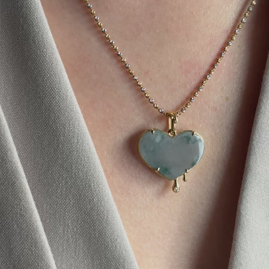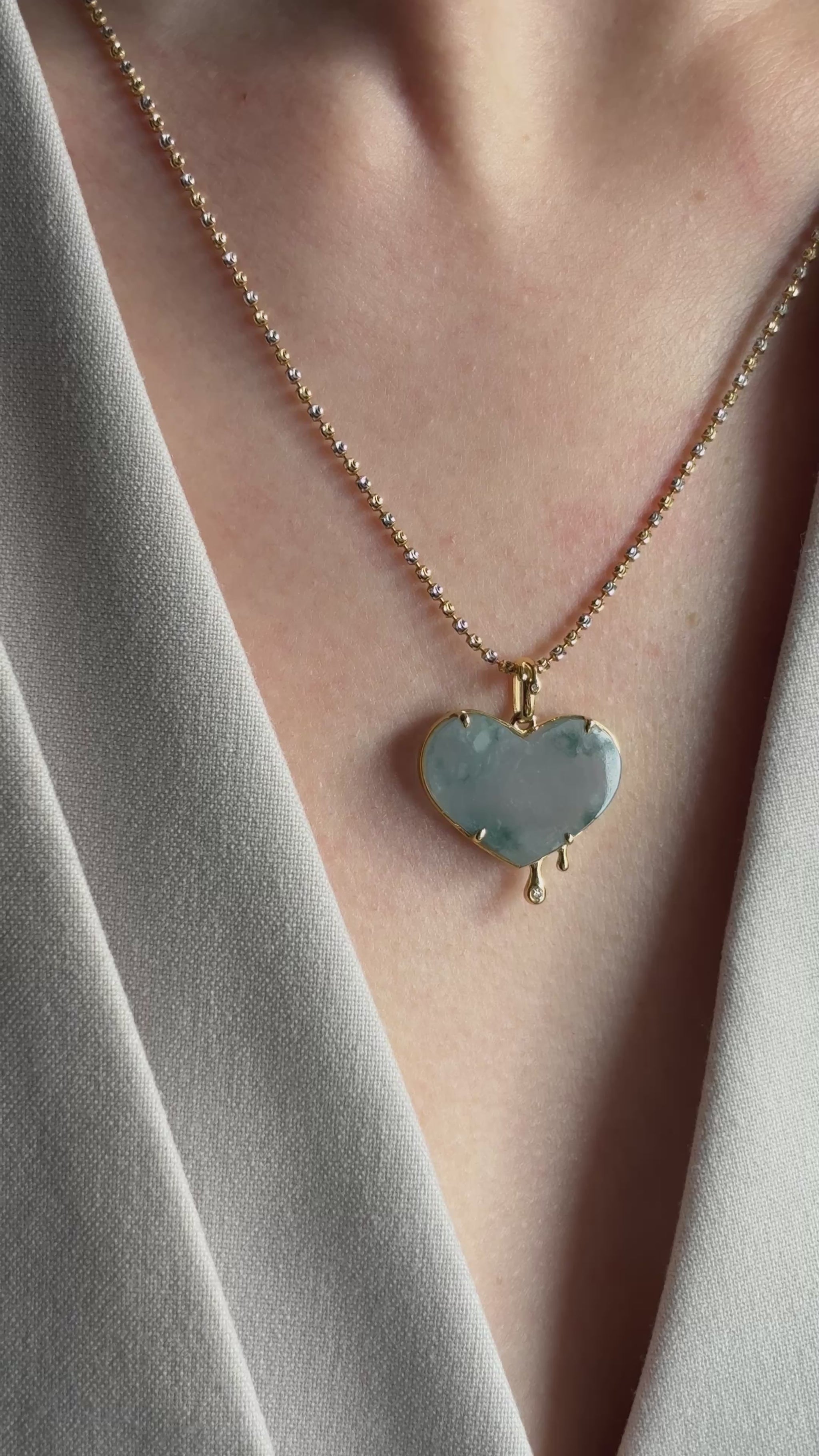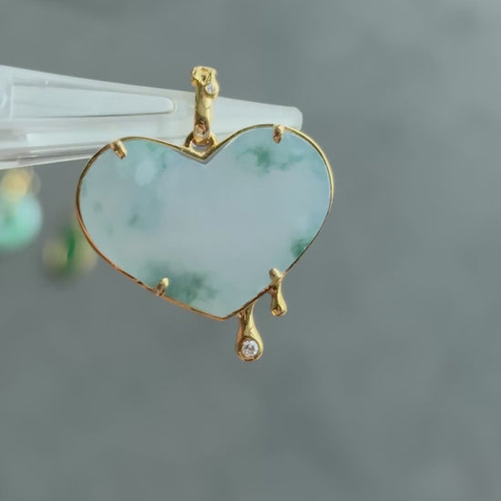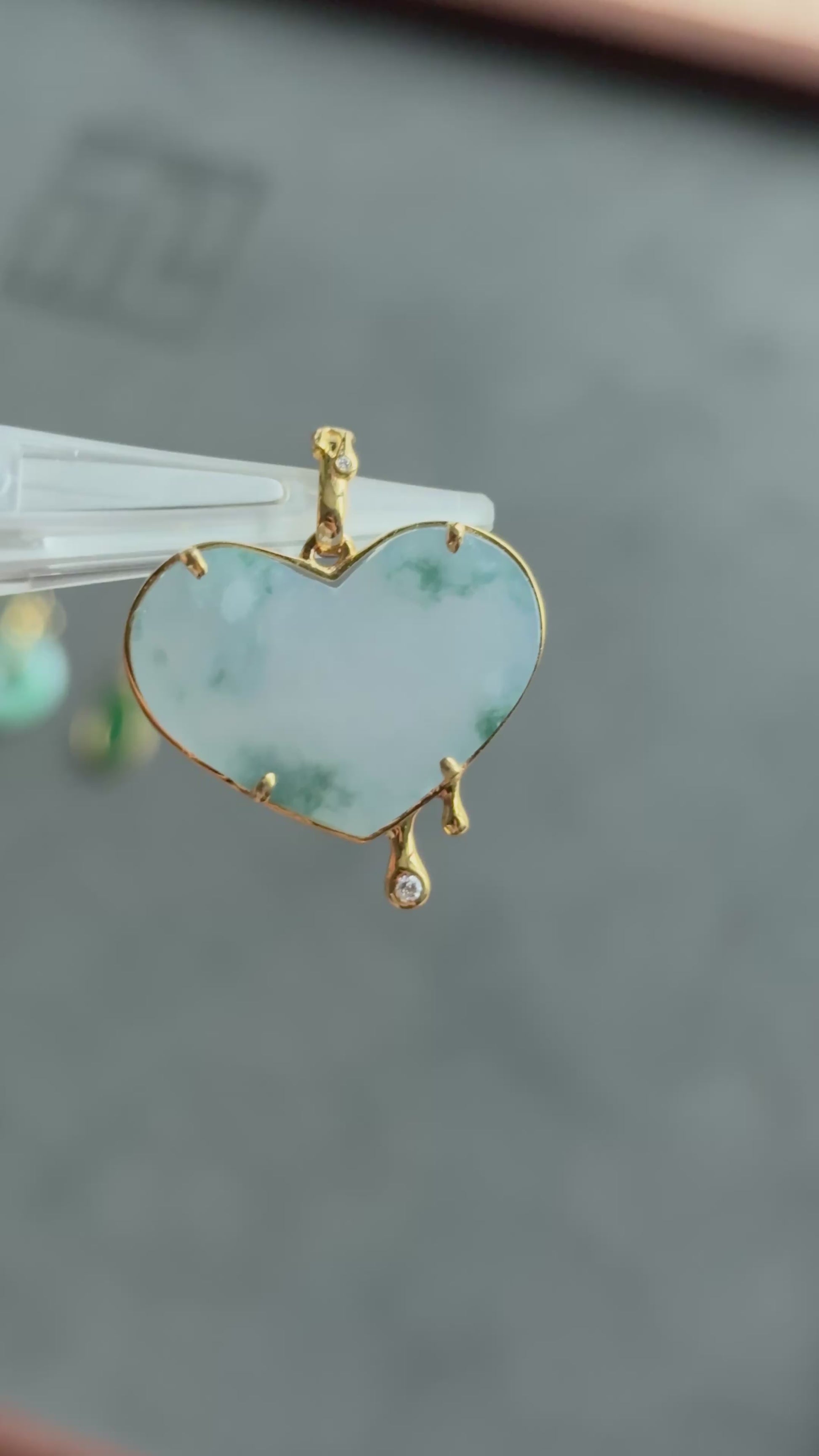 #0470 "Melting Heart" Icy Lavender Green Flower Jadeite Jade 18K Yellow Gold Pendant