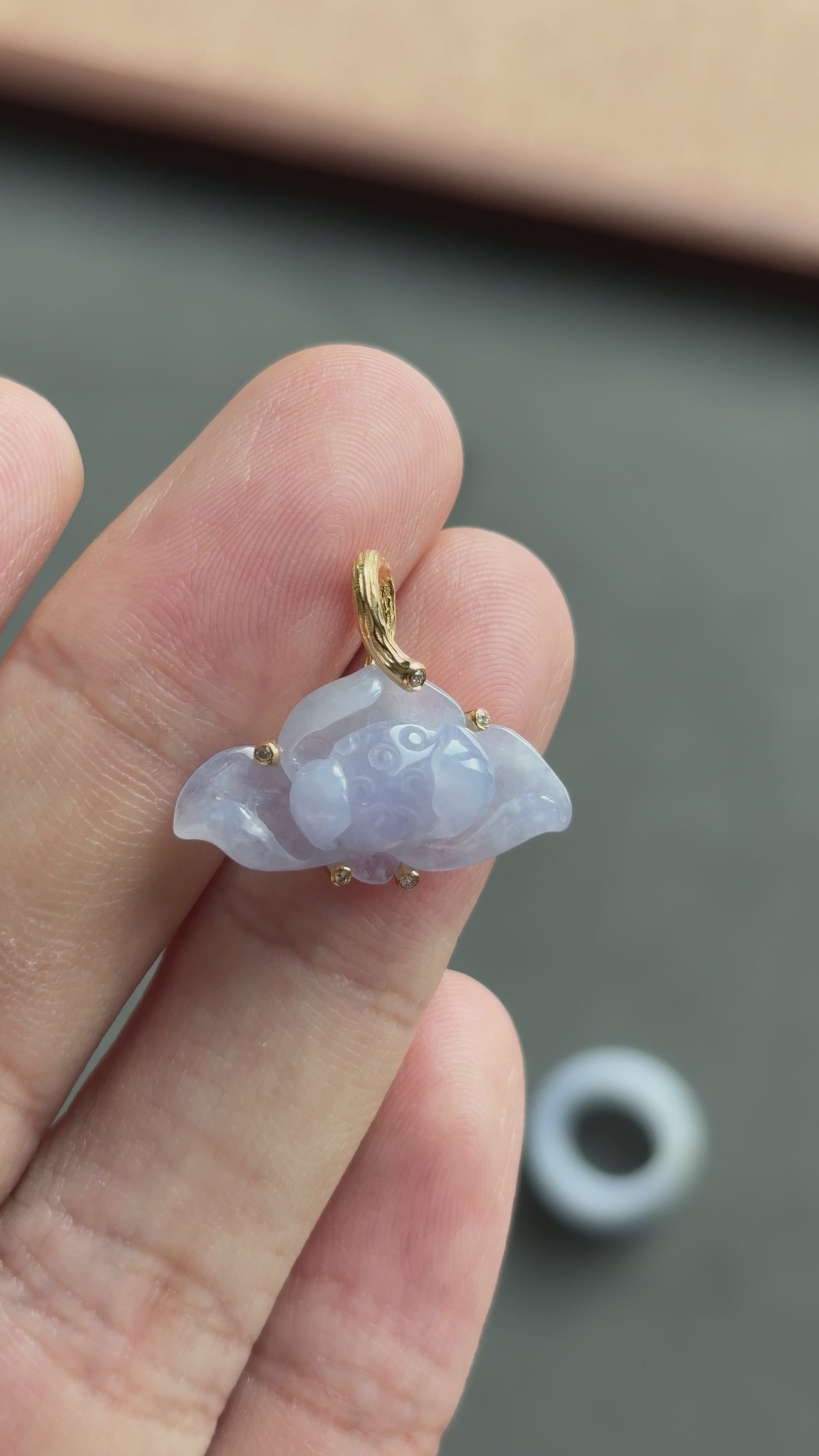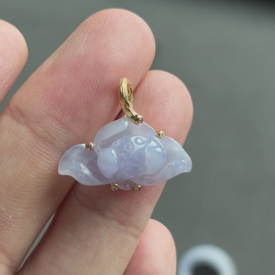 #0471 "Lotus" Icy Lavender Jadeite Jade 18K Yellow Gold Pendant