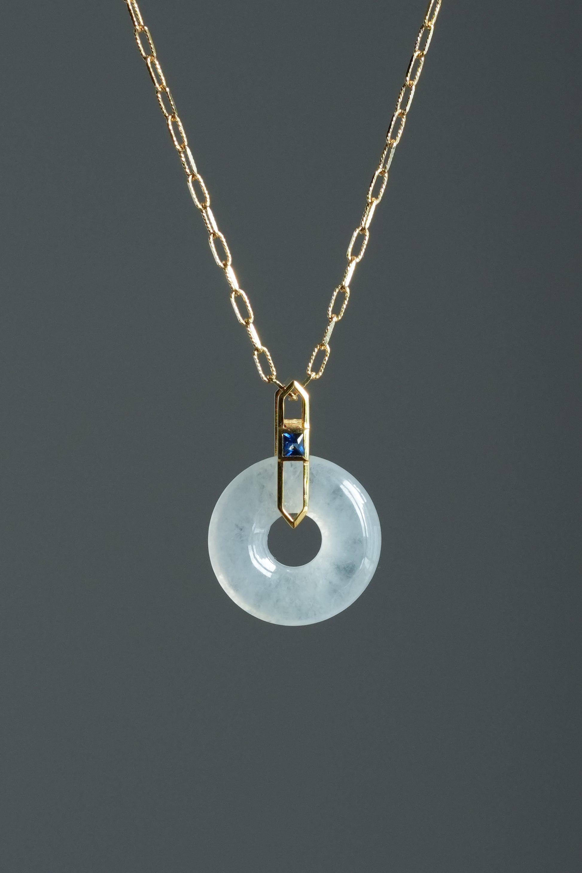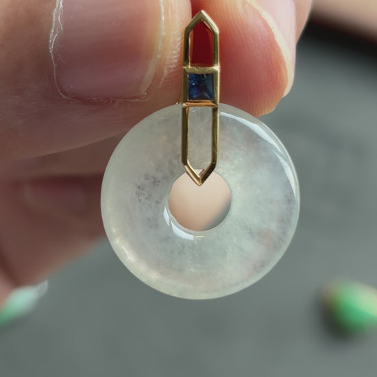 #0473 "Bi" Highly Icy White Jadeite Jade 18K Yellow Gold Pendant