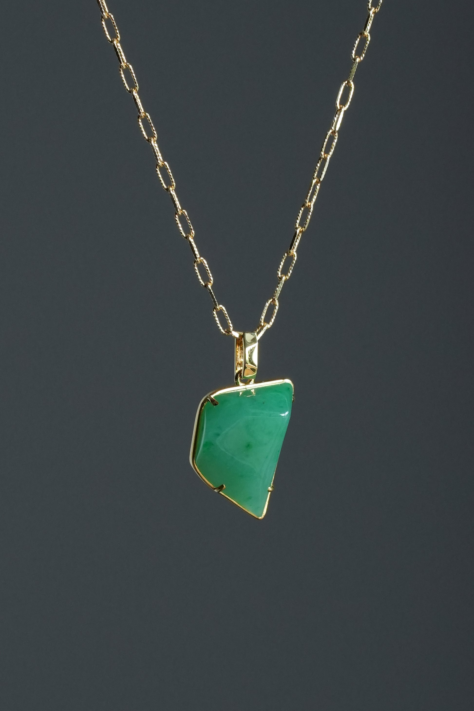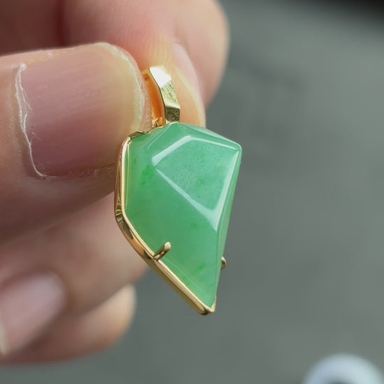 #0474 "Free" Icy Bright Sun Green Jadeite Jade 18K Yellow Gold Pendant