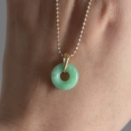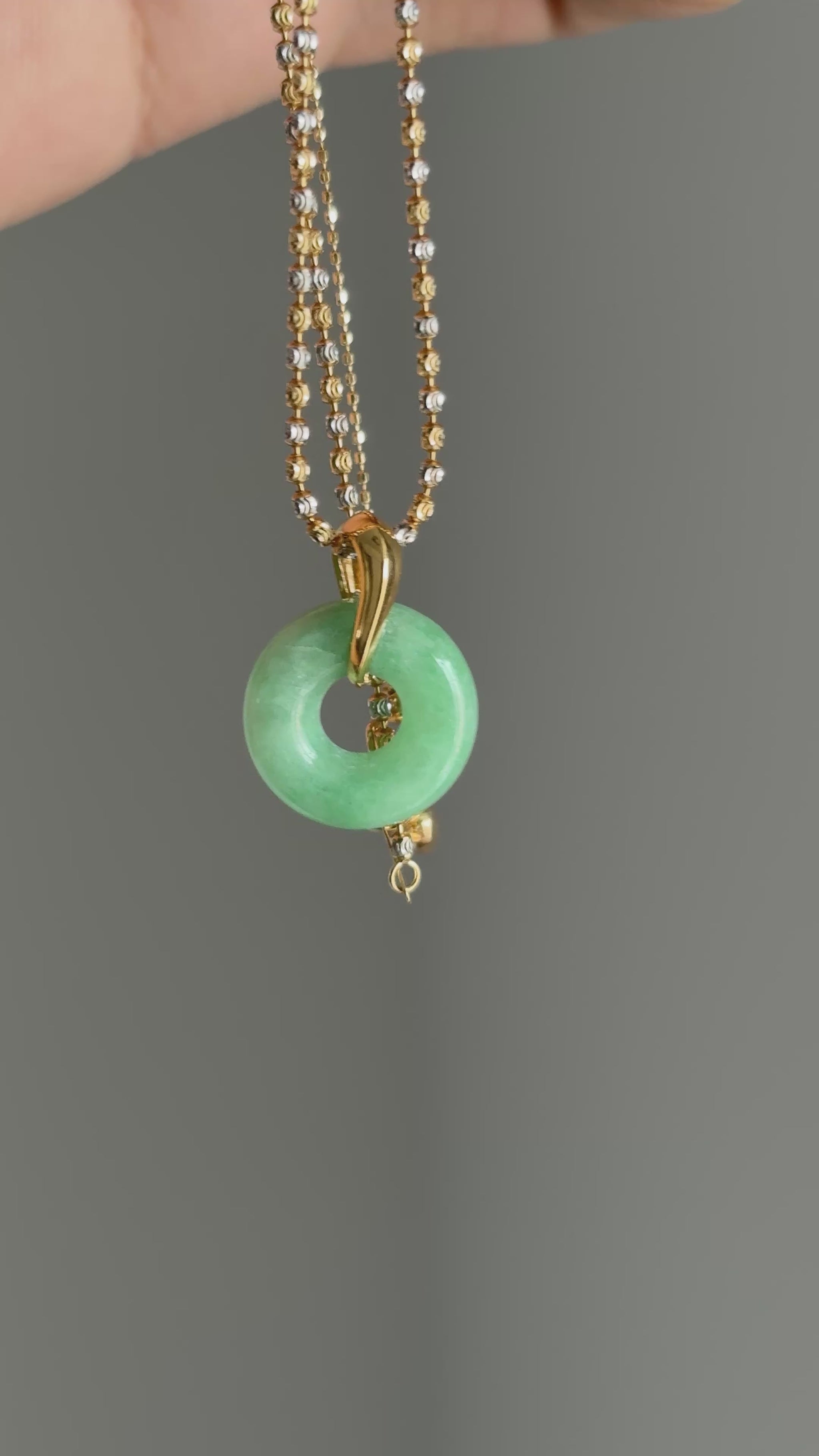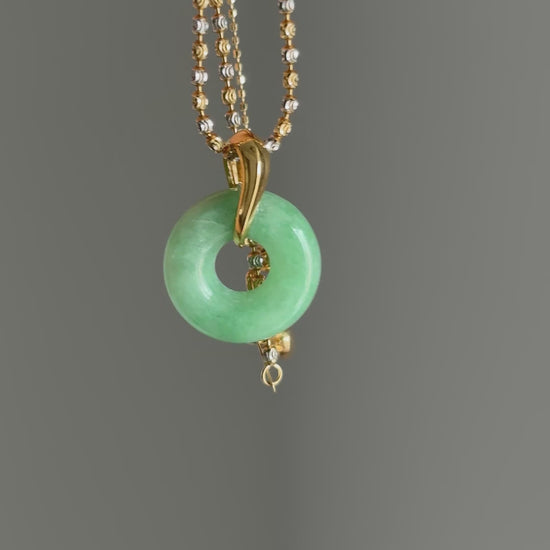 #P0478 "Bi" Vivid Green Jadeite Jade Donut 18K Yellow Gold Pendant