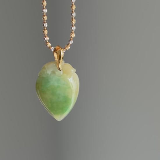 #P0479 "Fortune Peach" Yellow and Sun Green Jadeite Jade 18K Yellow Gold Pendant