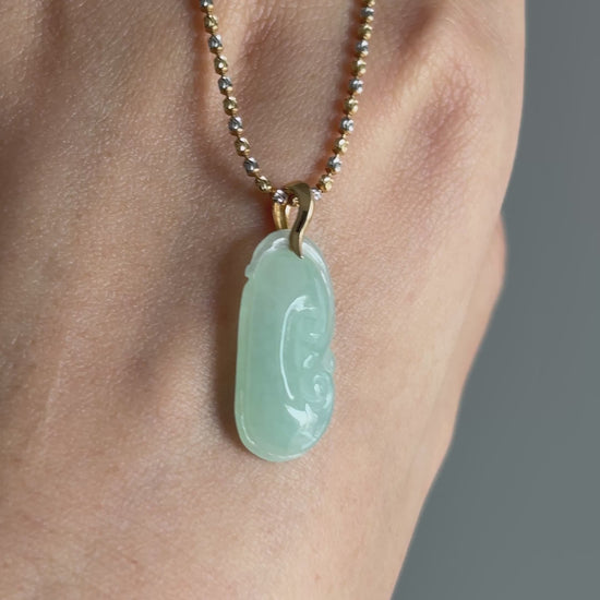 #P0484 "Ruyi" Icy Lotus Green Jadeite Jade 18K Yellow Gold Pendant