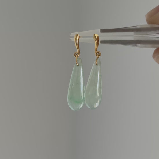#E0304 "Water Drop" Icy Blue Green Jadeite Jade 18K Yellow Gold Earrings