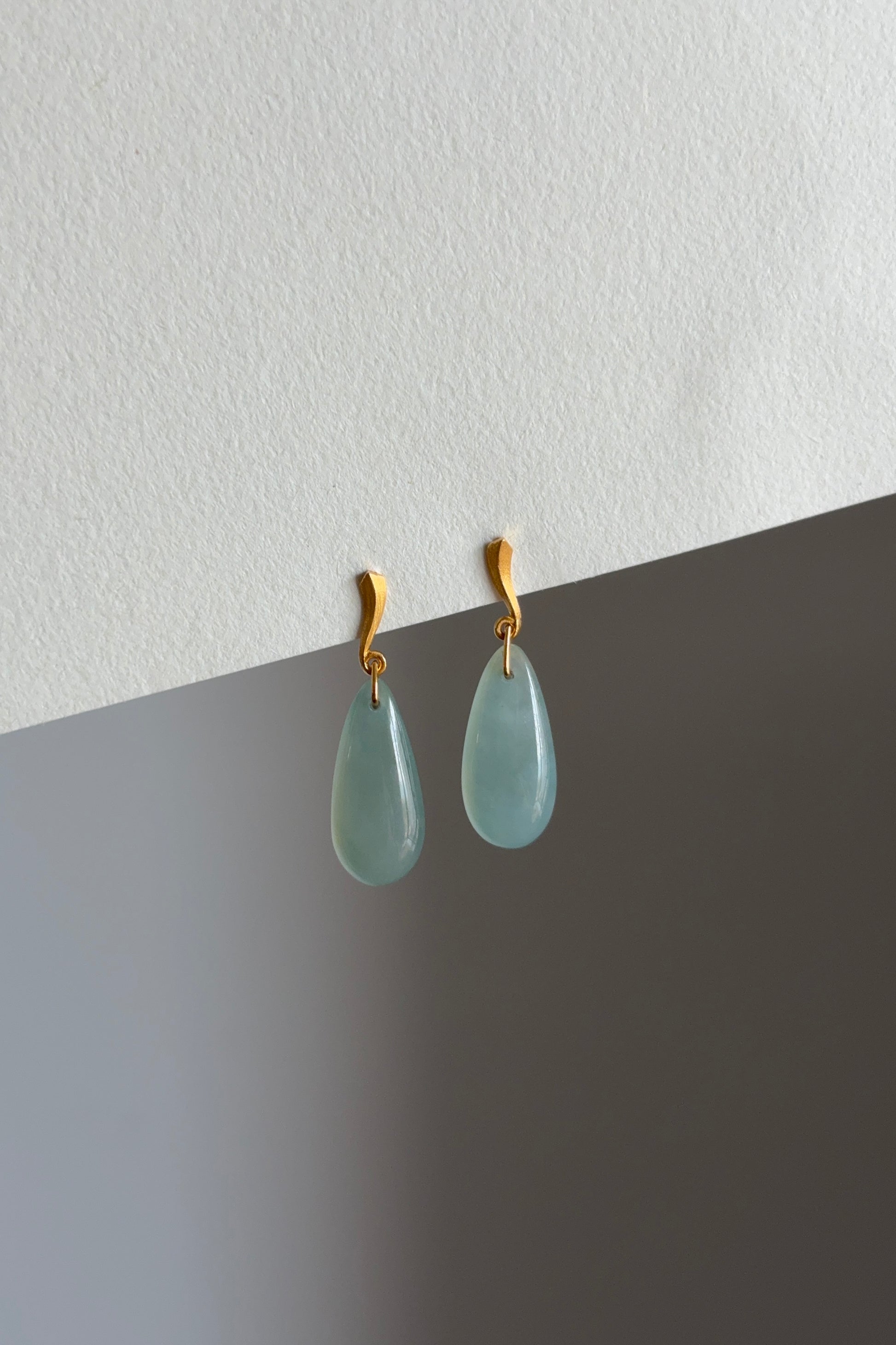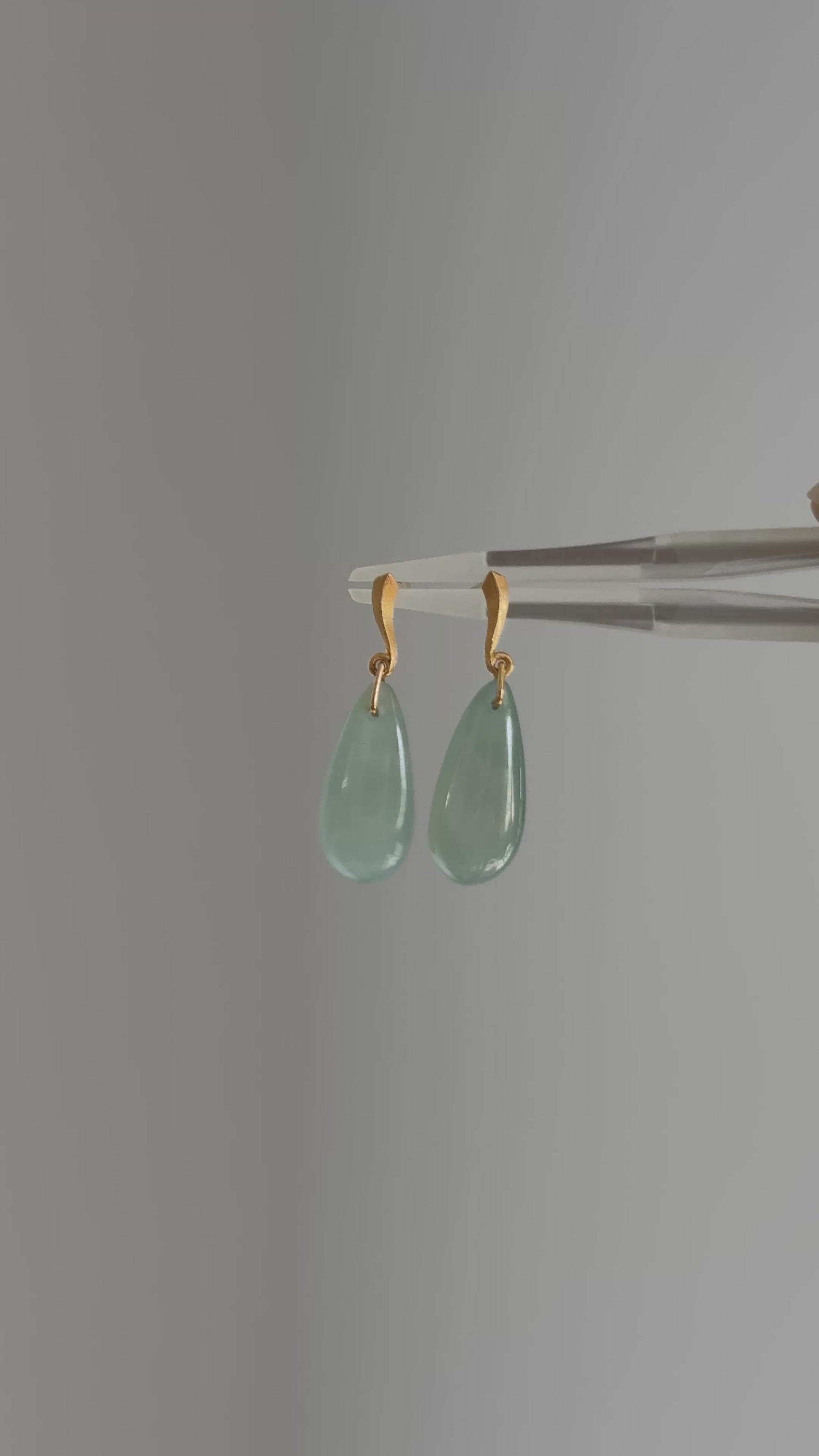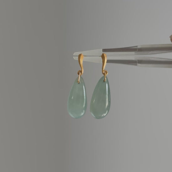 #E0305 "Water Drop" Icy Blue Green Jadeite Jade 18K Yellow Gold Earrings