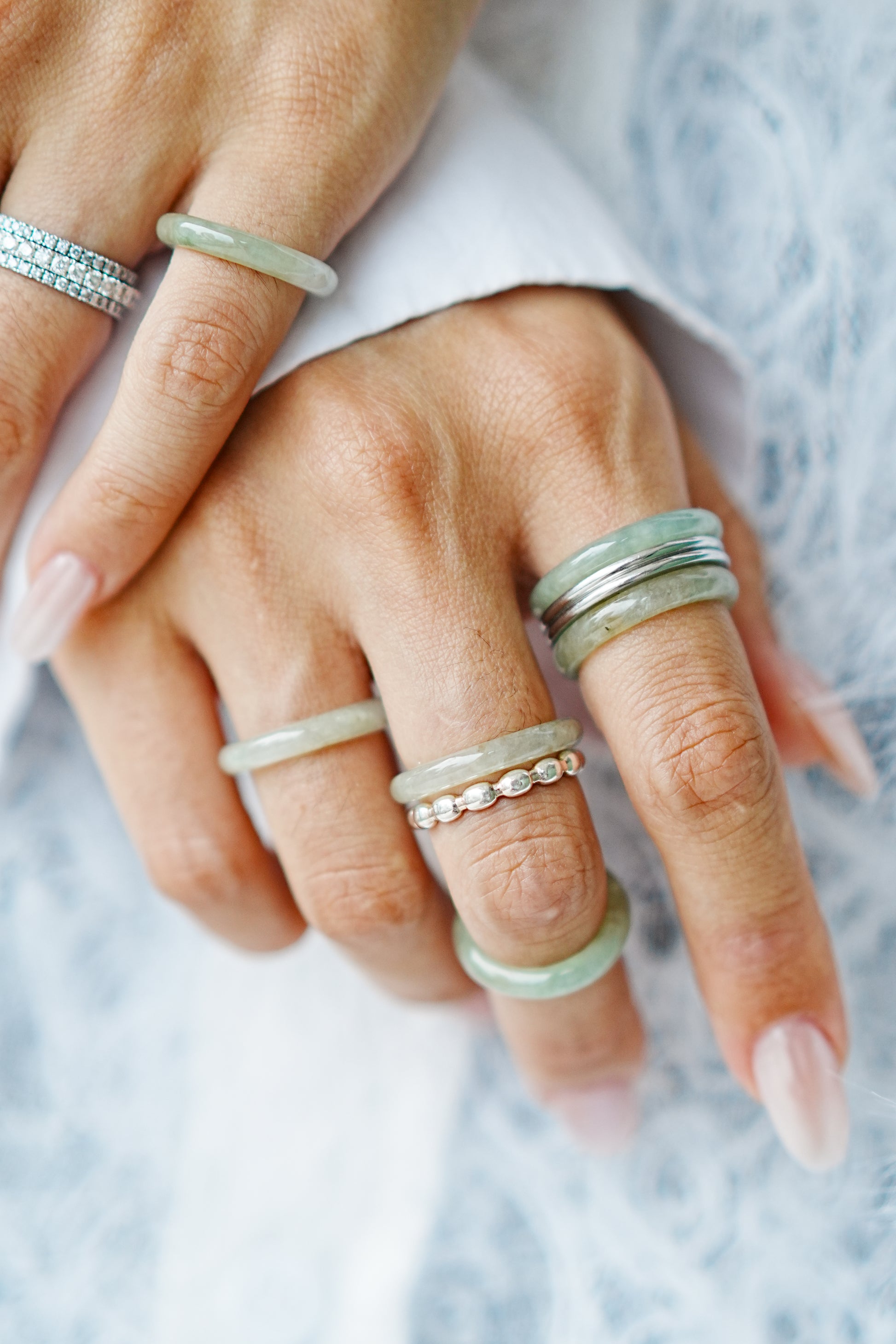 The cutting shape references the shape of traditional jade bangles, just like a mini jade bangle worn on your finger, adding a unique oriental traditional design element to your look.