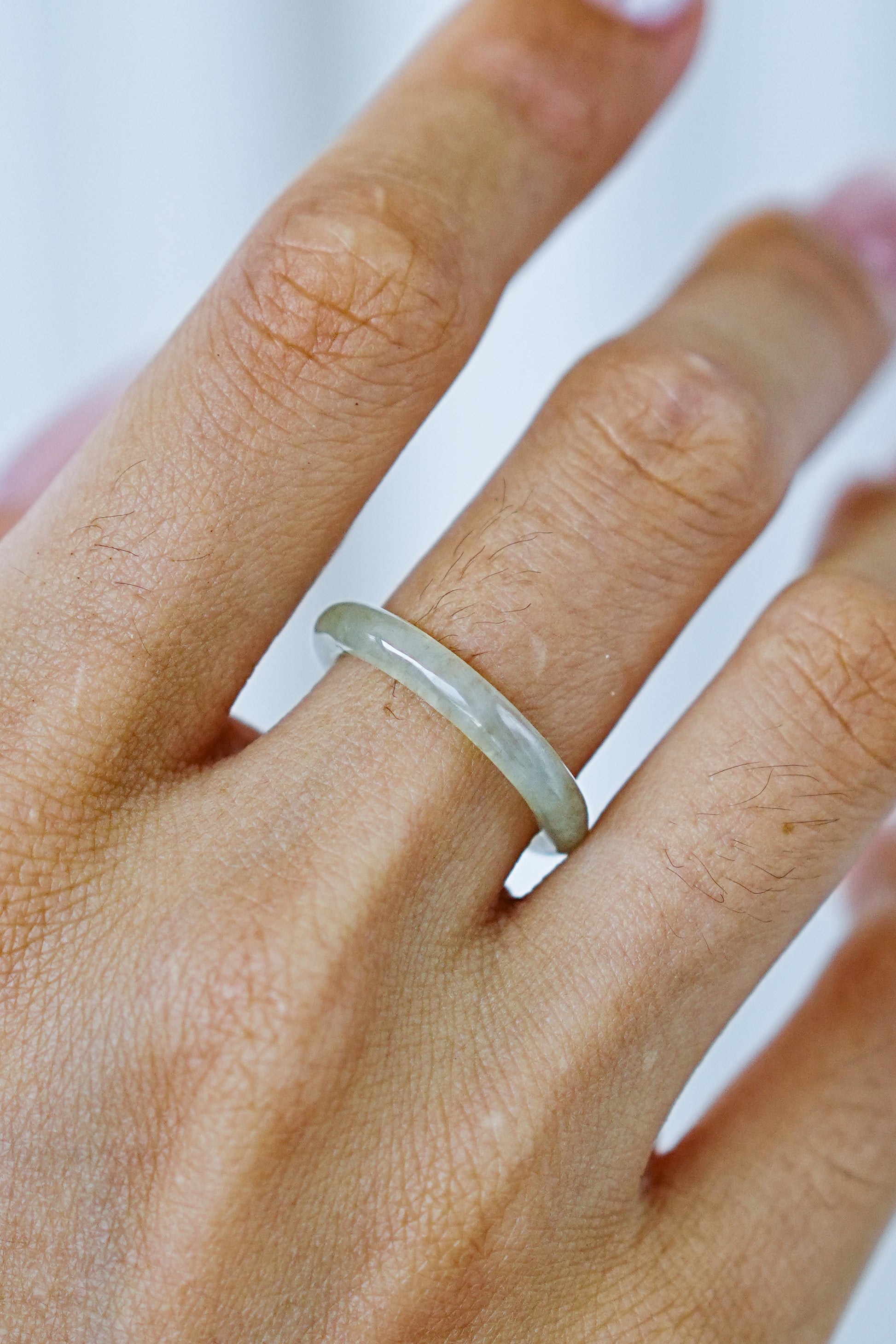 Highly Icy Jadeite Jade Slim Band Ring