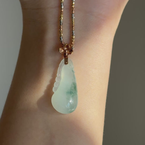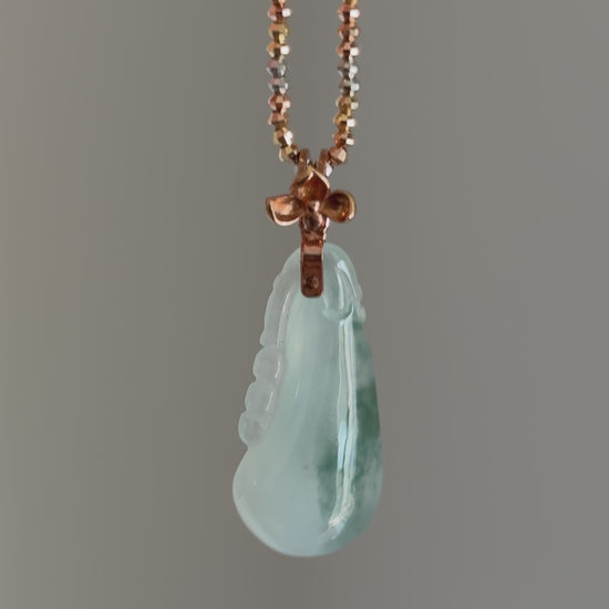 #P0487 "Fortune Melon" Icy Bluish Green Jadeite Jade 18K Rose Gold Pendant