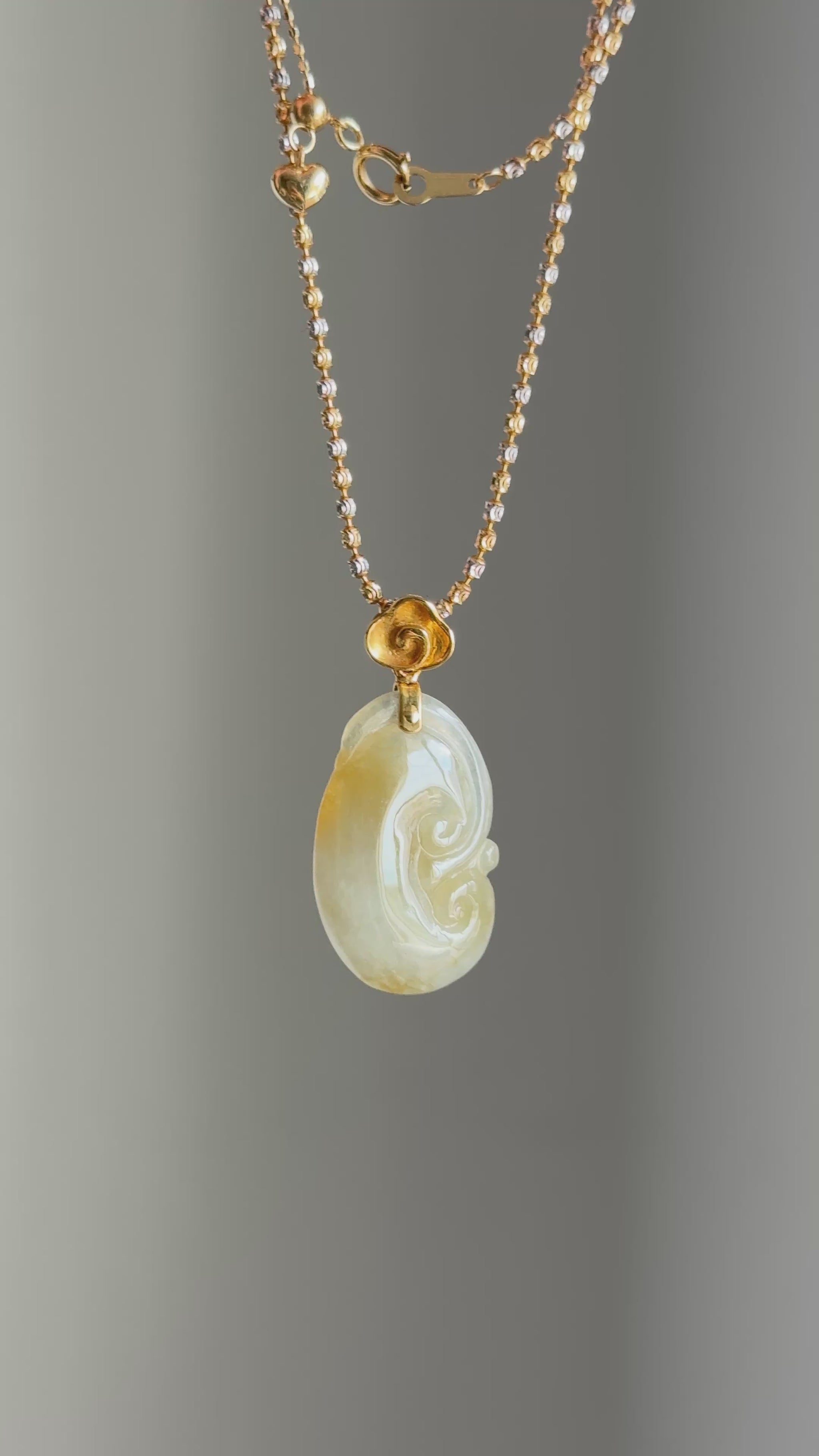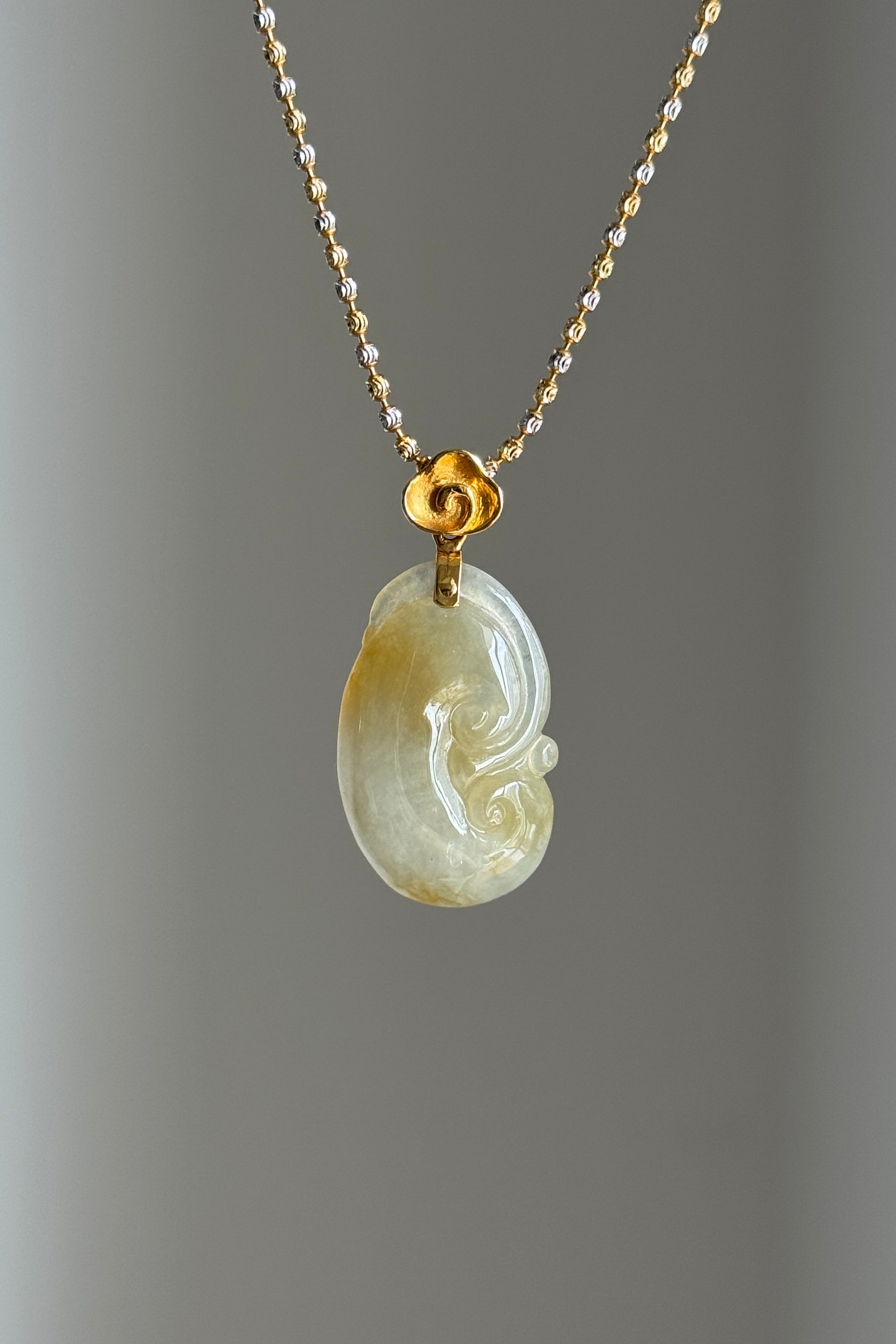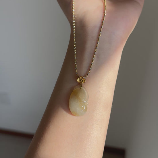 #P0488 "Ruyi / As Your Wish" Icy Yellow Golden Jadeite Jade 18K Yellow Gold Pendant