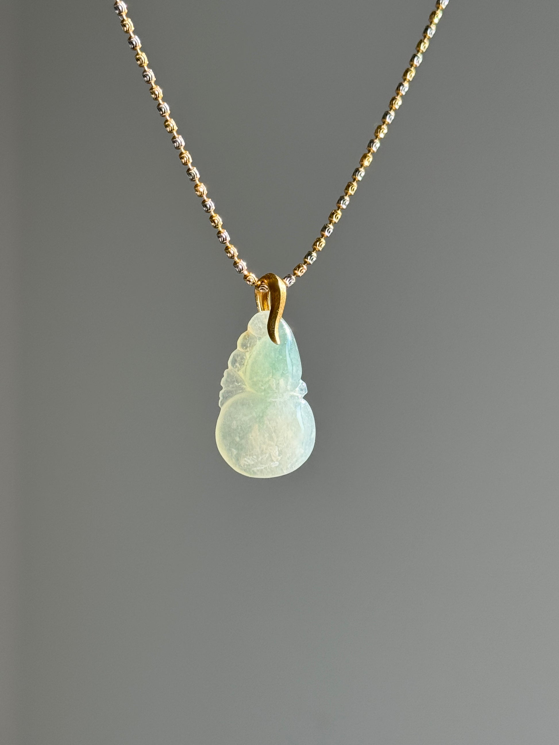 #P0502 "Hulu/Gourd" Icy Green Yellow Flower Jadeite Jade 18K Yellow Gold Pendant