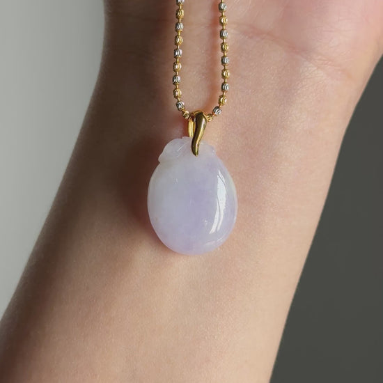 #P0511 "Fortune Peach" Pink Lavender Jadeite Jade 18K Yellow Gold Pendant