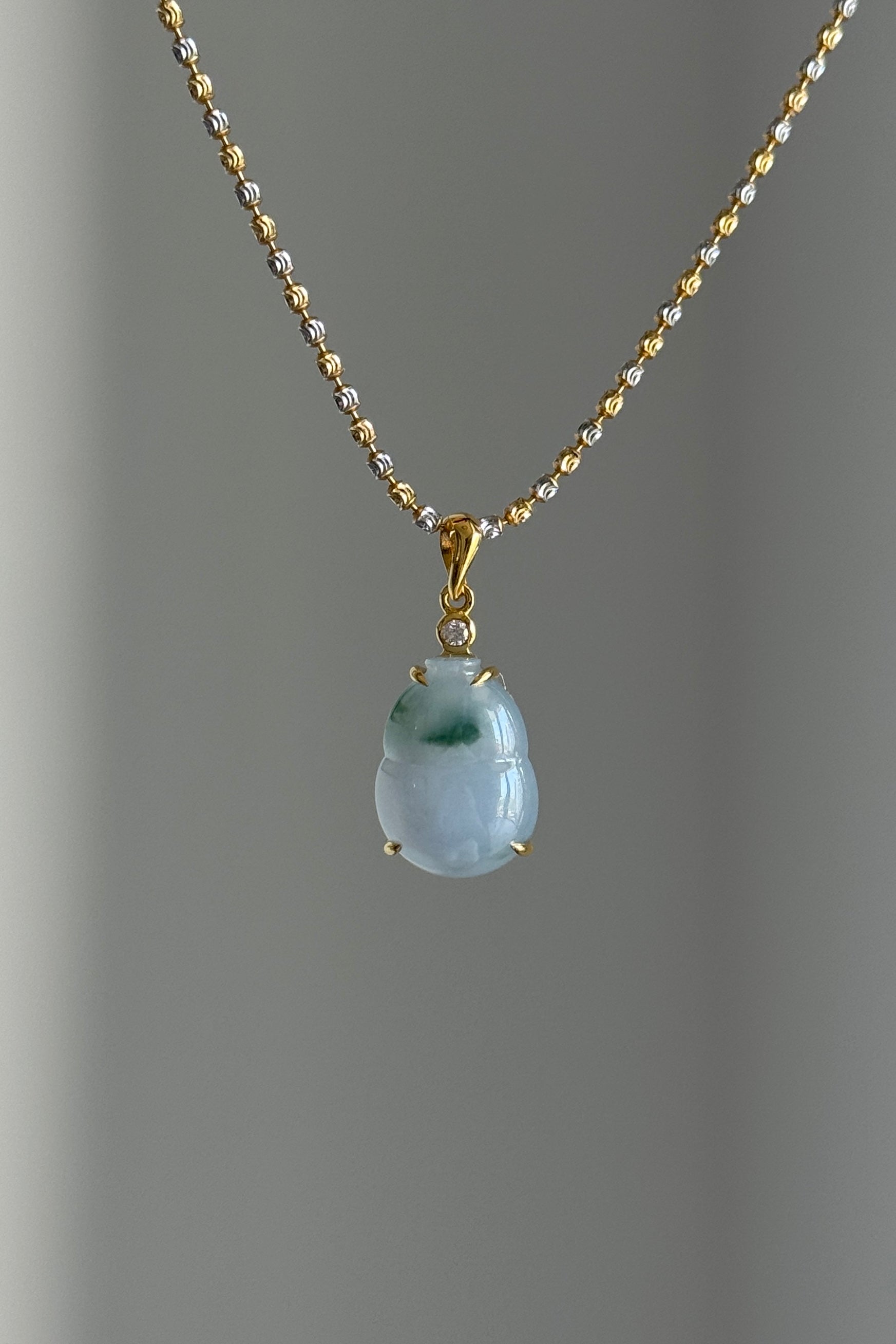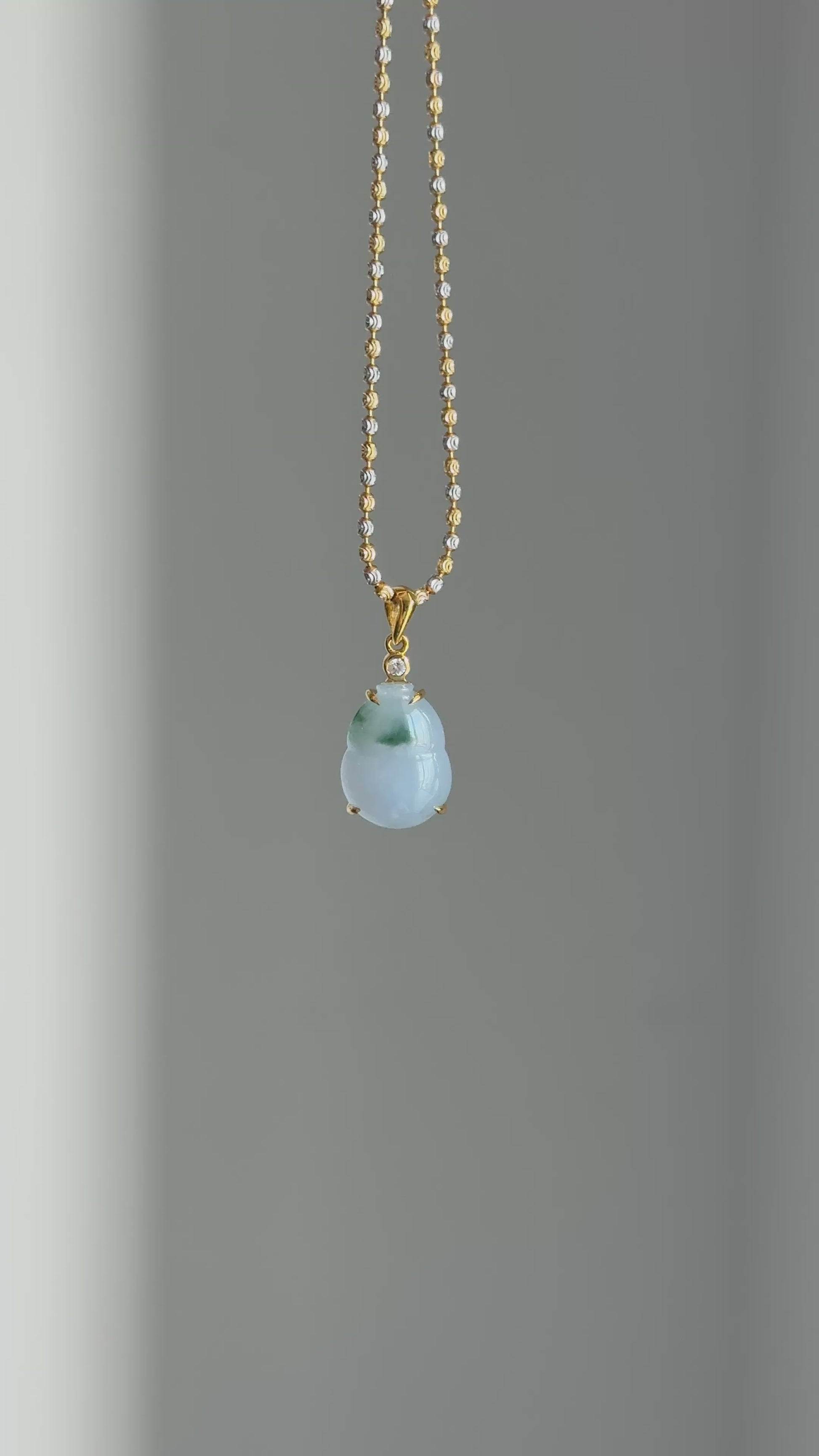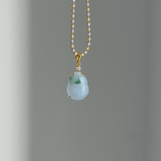 #P0514 "Hulu/Gourd" Icy Lavender Green Flower Jadeite Jade 18K Yellow Gold Pendant