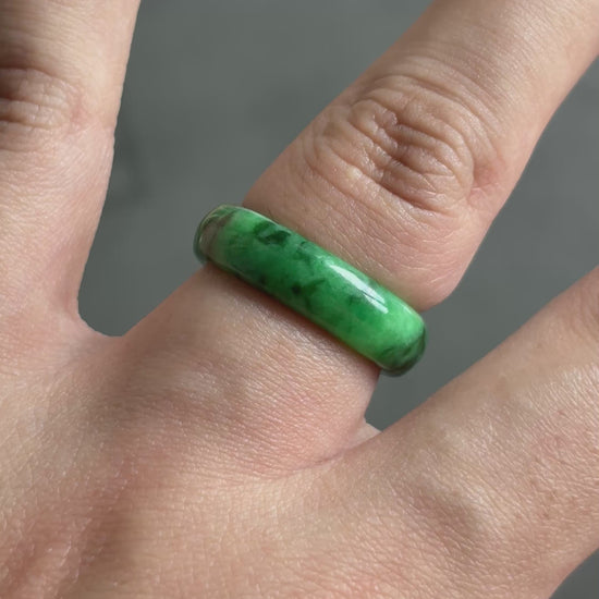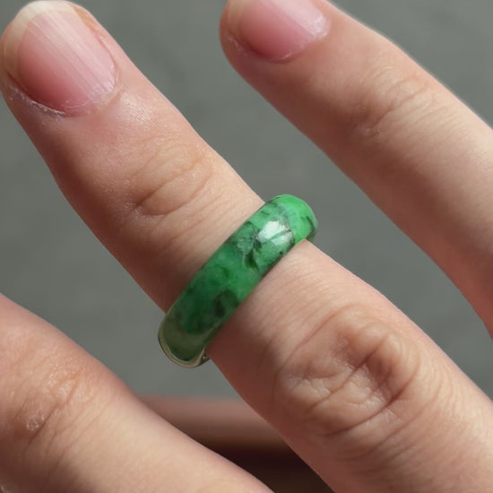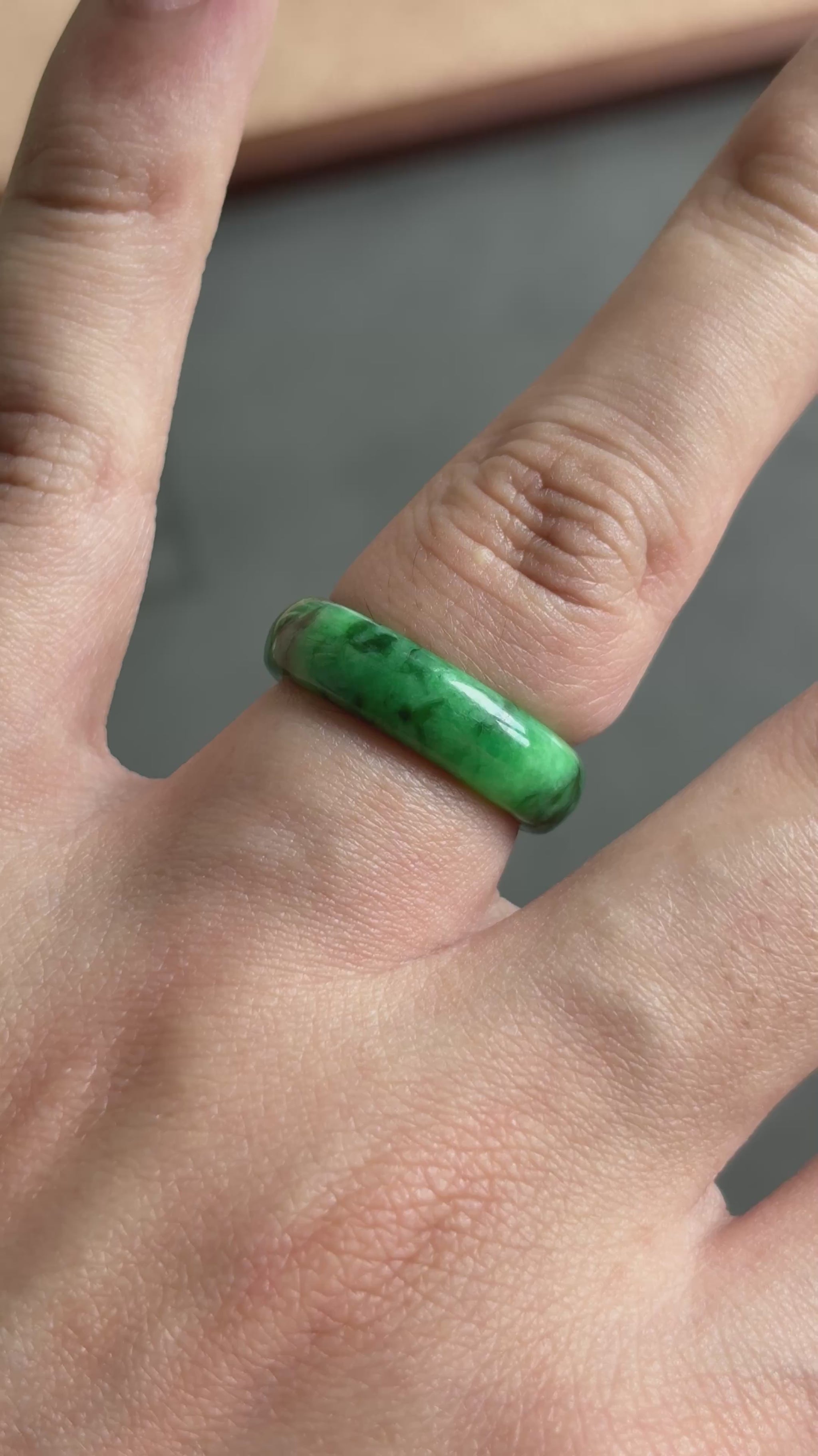 #R0601 Rich Green Jadeite Jade Band Ring Size 8