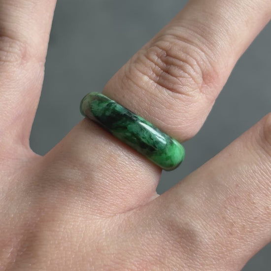 #R0602 Rich Green Jadeite Jade Band Ring Size 8