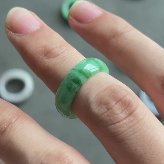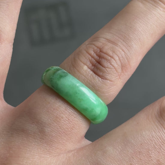 #R0605 Vivid Green Jadeite Jade Band Ring Size 8.25