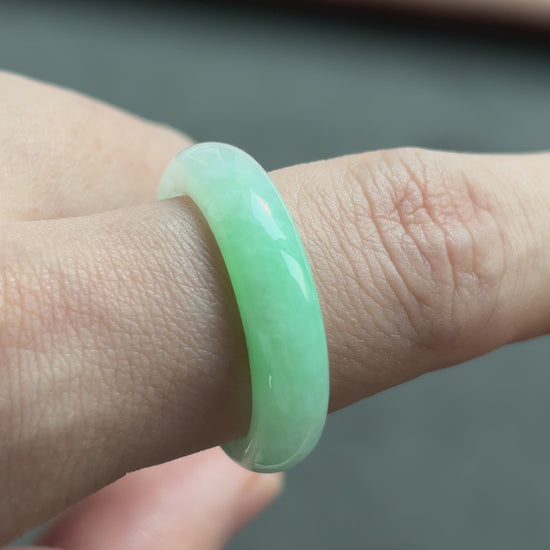 #R0609 Icy Vivid Green Jadeite Jade Band Ring Size 10.75